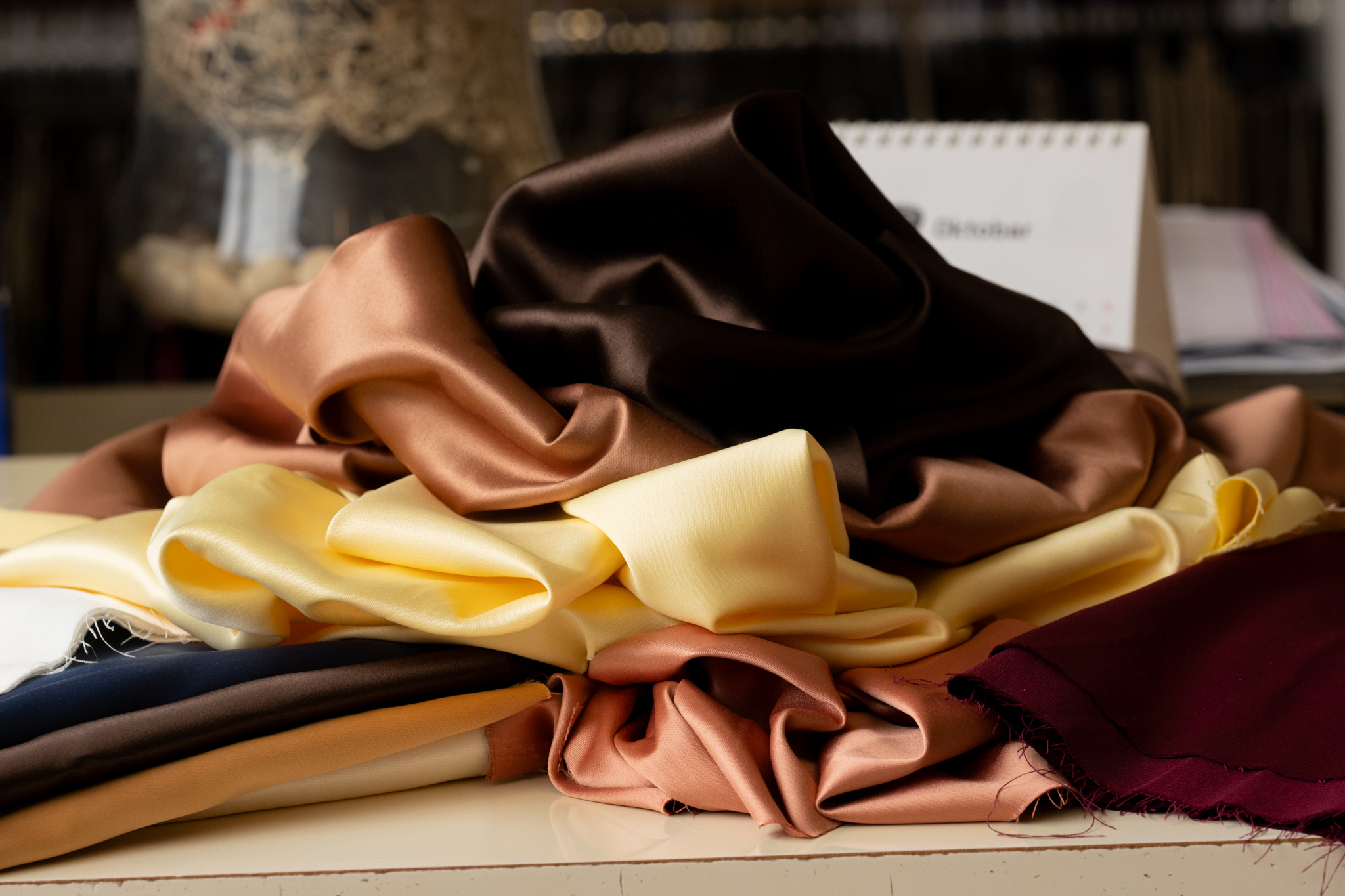 U ponudi kompanije Textil, saten je pažljivo selektovan kroz različite strukture kako bi odgovorio na potrebe savremenog krojenja – od arhitektonskih silueta do pokretljivih, funkcionalnih komada.