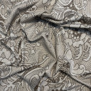 Material with a defect (Class B), at an extremely low price. No possibility of return or claim. This Patterned Ponte de Roma, ultra-smooth, soft hand with supple drape is a chic, comfortable tri-season fabric. Thin and of a medium weight, use it to create peplum tops, fit-and-flare dresses, pencil skirts, and more. Completely opaque, lining this material is not of necessity for most applications. Note that this material has a very similar hand and body to that of a scuba knit.