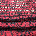 Elegant Floral Nylon lace in red-black color combination. This luxurious fabric is suitable for creating evening dresses, blouses, tunics, overalls, skirts. You can also use it for fashion details.
