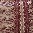 Floral Nylon lace, sleek in some areas and tactile in others. Its fluid drape combined with the mechanical all around give will work wonderfully in fashioning lingerie, evening gowns, and some sensual blouses. Left open in some areas due to the lace contruction, consider a lining for full coverage.