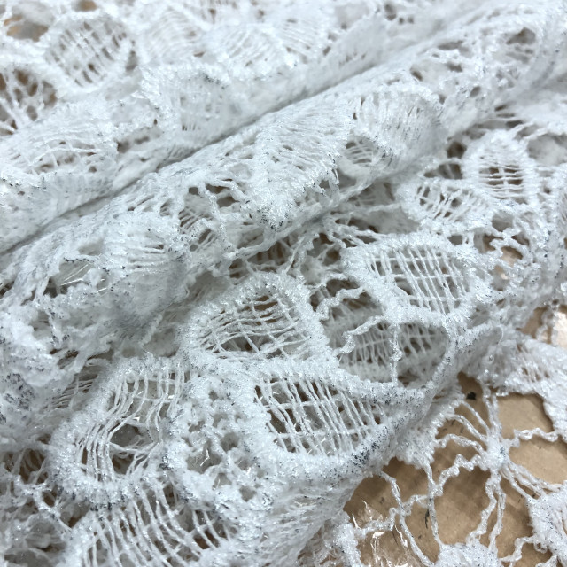 Elegant lace with discreet foil, rich embroidery. The floral designs of this luxurious fabric will make your collections unique. Create cocktail evening dresses, skirts, elegant blouses, and cardigans.