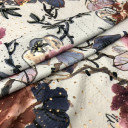 Eylet knitted fabric with geometric design and interesting print. Soft and lightly textured, this light and airy fabric moves and drapes with ease into flowing silhouettes. We are recommending models such as : blouses, dresses, T-shirts, skirts, kaftans.