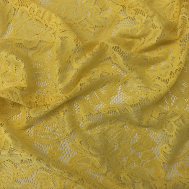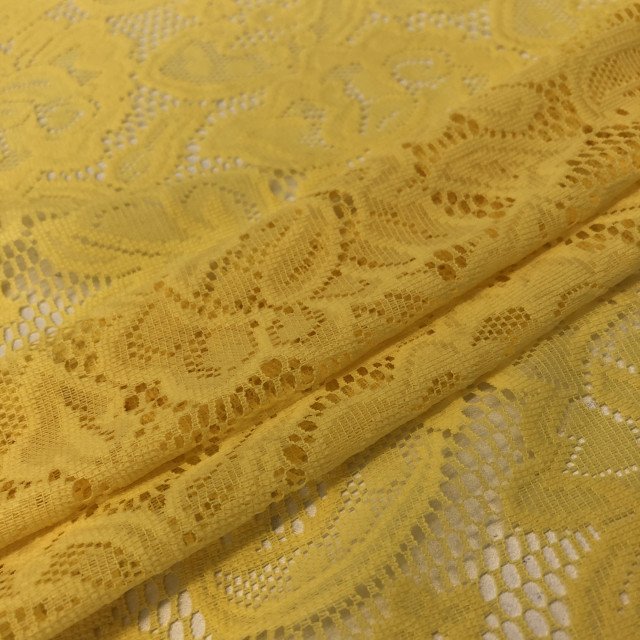 This elegant lace with textured hand, a modestly structured drape, and a beautiful corded lace pattern would look amazing in the form of flounce skirts, empire-waist dresses with ruffled sleeves, high-neck blouses and more! As a lace with see-through pockets, a lining may be needed for additional structure or modesty if desired.