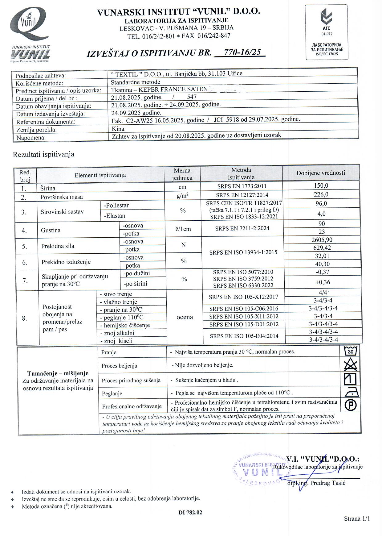 Textil presents you an elegant satinized twill with elastane, as a symbol of comfort and luxury! Its intense shine makes it suitable for formal fashion collections, and the fact that it is stretchable for everyday and business wear. You will love any product made of this comfortable fabric, be it pants, jackets, dresses and skirts... It belongs to the group of universal materials that can be used in any season. This fabric is also known as American satin.