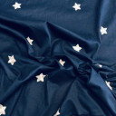 Soft summer cotton twill in navy color, enriched with attractive embroidery, which makes it ideal for children's collections. It contains a small amount of elastin, and thus offers comfort and convenience. We recommend sewing shirts-dresses, different models of skirts, bermuda shorts, jackets or pants.