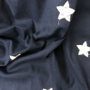 Soft summer cotton twill in navy color, enriched with attractive embroidery, which makes it ideal for children's collections. It contains a small amount of elastin, and thus offers comfort and convenience. We recommend sewing shirts-dresses, different models of skirts, bermuda shorts, jackets or pants.
