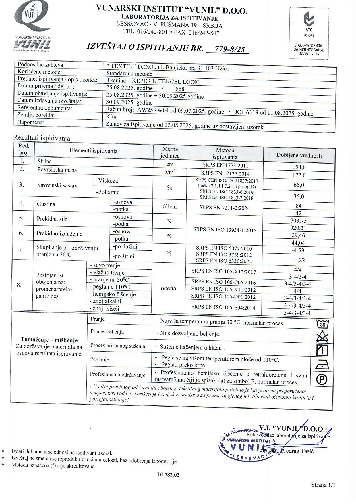 Tkanina sa finim keper tkanjem i izgledom koji podseća na Tencel – glatka, lepršava i prijatna na dodir. Kombinacija rajona i najlona daje materijalu savršen balans između mekoće, prozračnosti i postojanosti.Idealan za moderne košulje, ležerne pantalone, haljine i komplete u kojima se udobnost i elegancija podrazumevaju.