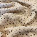 Lightweight printed cotton muslin, perfect for summer clothing and garments that require softness and breathability. Made from 100% cotton, this fabric is gentle on the skin and exceptionally comfortable to wear. Its double-layered structure adds subtle volume and extra softness. Ideal for crafting dresses, blouses, tunics, and children's clothing