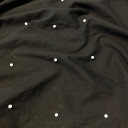 Stretch Cotton Poplin with a emrboidered beads. This fabric has crisp hand and a flexible, yet structured drape. Boasting a tight weave construction, Poplin does not wrinkle easily. A resilient give in its cross-grain issues that sort of stretch you need in silhouettes like classic button-ups, pencil skirts, sheath dresses, and more. Medium weight and opaque, a lining is not of necessity.