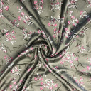 Elegant, fluid ligtweight Satin Print. This fabric is ready for the party! We see everything from flirty A-line dresses to high-waisted wide-leg pants with a matching crop top. For those who are seeking movement, it has a fuller drape and a stretch through the weft. Note that it is slightly translucent over bold colors and may require a lining.