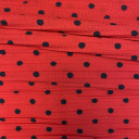 A pleated and printed polyester shirting. It has crisp and grainy hand, soft feel and supple facing. Impeccably smooth, it moves and drapes with ease to create flowing dresses, skirts and blouses. Thin and lightweight, it is translucent and may require a lining.