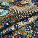 A light chiffon with luminous satin stripe and atractive print. With a fluid drape and crisp hand, you can craft a high collared blouse or tunic with ruffles, sheath cocktail dress and skirt. Alternating between sheer and opaque, use the fabric's play on opacity to your creative advantage or include a lining for added modesty.