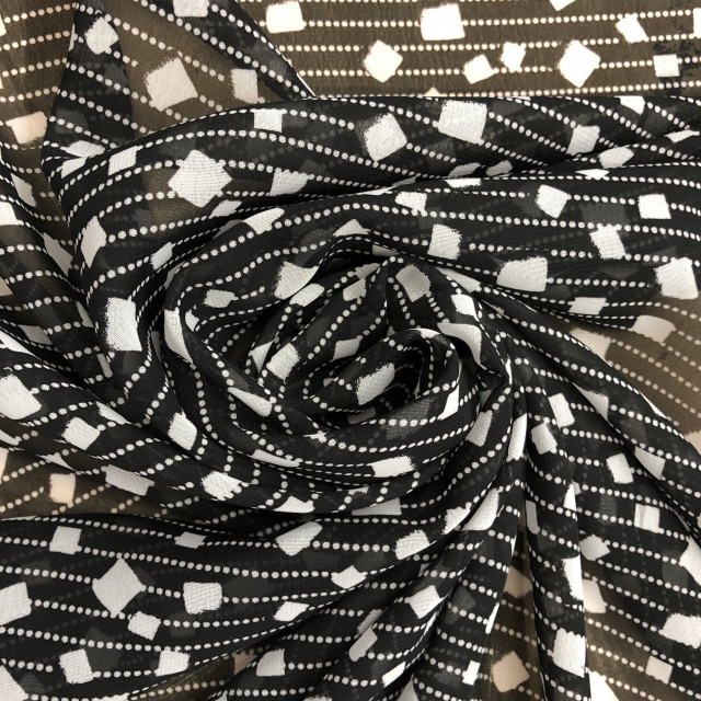 Fine and smooth printed chiffon. Chiffons are characteristically lightweight, sheer and made up of very fine, tightly twisted yarns. Although they may look flimsy, they tend to be very strong and can easily be used for tops, dresses, evening wear, scarves and overlay fabrics.