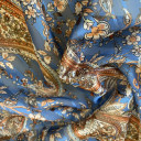 Light and airy chiffon fabric with digital print and lurex. It is characterized by a beautiful drape and a crisp feel. It can be used to sew layered dresses, tunics, blouses, and skirts. The base is transparent, allowing for customization of lining according to preference.
