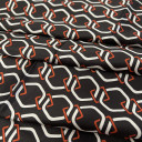 Satin fabric with a beautiful sheen and digital print. The fabric is soft, has a nice drape and is suitable for draping and pleating. It can boast of not wrinkling and being pleasant to the touch, regardless of the composition. It is most commonly used for elegant clothing such as satin dresses, skirts, pants, and shirts.