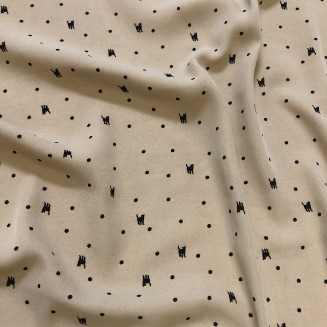 Elegant crep fabric based on polyester, which is extremely popular when it comes to the production of blouses, tunics, shirts, dresses. In addition, this material is silky and smooth to the touch . With a slightly grainy yet overall soft hand and shimmering luster, this crepe de chine fabric can easily be manipulated and handled, is very long wearing, and boasts a semi-sheer construction.