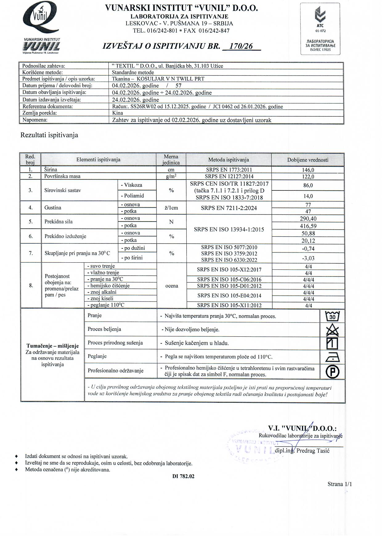 Ovaj materijal je izrađen od mešavine rajona i  najlona štoga čini mekanim i prozračnim, a ujedno otpornim na gužvanje. Zahvaljujući keper (twill) tkanju, materijal ima prepoznatljivu dijagonalnu strukturu. Idealan za izradu košulja, bluza, haljina i drugih odevnih komada koji zahtevaju kombinaciju udobnosti i sofisticiranog izgleda.