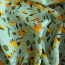 Printed viscose fabric soft, dry, and slightly tactile hand. Thin, with a light, fluid drape it is especially suitable for elegant models of blouses, shirts, tunics as well as fluttering evening dresses. Slightly translucent, a lining isn’t necessary, but one may be desirable for both opacity and additional structure.