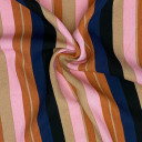 Printed and Crinkled Viscose crisp and cool in hand. It offers a textural wrinkled look. Lightweight with a supple, fluttering drape, craft blouses,shirts, jumpsuits, airy dresses, scarves, and swimwear cover-ups that’ll keep you cool and protected from the sun. Somewhat translucent, a lining may be added for opacity and structure but isn’t strictly necessary.