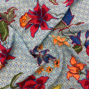 Printed Rayon Poplin Shirting, which combines the crisp feel of poplin with rayon’s supple drape. This woven material offers a cool, smooth hand. Use the soft drape to craft flowing dresses and skirts, artful blouses with gathered details and belted waistlines, or an array of loungewear and pajama separates, perfectly light for summer wear. Translucent, insert a lining for full opacity and additional structure where desired.