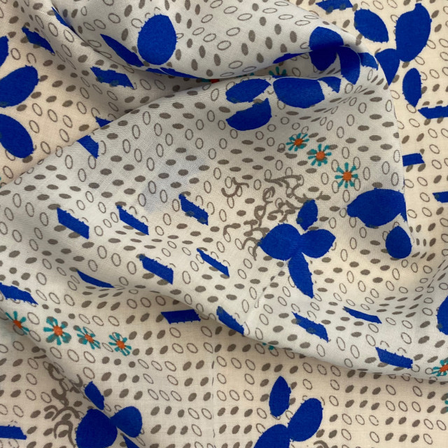 Silky and light 100% viscose with an attractive print. Soft, comfortable, lighter weight, suitable for spring and summer dresses, shirts, blouses, tunics…