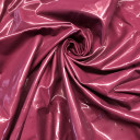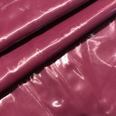 Faux Leather Vinyl with exceptional gloss, vibrant color, and crisp woven white backing. Silck and with stiff drape, create fashion structural skirts and jackets, pants and leggings. Seam binding may be useful for a professional finish, along with linings for comfort in wear.