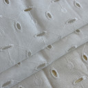 The fabric LAN V VERIS EYLET is characterized by its breathable structure, making it ideal for warmer days.Eylet details in the form of small perforations add both a decorative and functional touch, improving ventilation and enhancing the visual appeal.. t is suitable for making summer dresses, tunics, blouses, and lightweight skirts