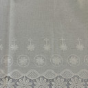 Linen in its natural color with a romantic embroidered border along one side. This natural fabric is perfect for unique dresses, skirts, and tunics, allowing you to create standout pieces that capture attention and stand out in the market.
