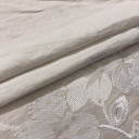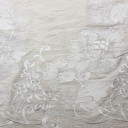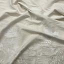 An elegant embroidered linen that features one side border floral design. Medium-weight, it has a stiffer drape. Make a beautiful lined skirt or shift dress.