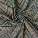 Polyester knit with a Missoni design interwoven with shiny lurex. This elegant knitwear is suitable for creating dresses, skirts, tunics, pants, and blazers that follow the body's contours.