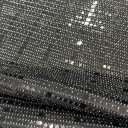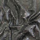 Elegant and unique in it's design Metallic Sequined Knit! Sequins are arranged on a grid atop a knit ground. Textured in hand with a supple drape, this material is idela for fashion swinging skirts that’ll catch the light as you dance all night, adorn boring tops with statement sleeves, or unique pair of pants! Opaque, a lining isn’t necessary but may be desirable for comfort in wear.