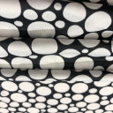 Printed polyester knit with a soft, slick hand and ultra-fluid drape This fabric features an exceptionally elastic stretch, so perfect for fab leggings with a decorative bottom, terrific tees, and fit-and-flare dresses with excellently swinging skirts. Translucent and quite thin, consider adding a lining for opacity and structure where needed.