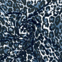 Printed polyester knit with a soft, slick hand and ultra-fluid drape This fabric features an exceptionally elastic stretch, so perfect for fab leggings with a decorative bottom, terrific tees, and fit-and-flare dresses with excellently swinging skirts. Translucent and quite thin, consider adding a lining for opacity and structure where needed.