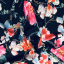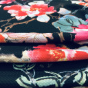 Printed polyester knitwear with a honeysuckle pique structure, ideal for the Spring and Summer seasons. A pique is formulated from a weaving style which raises the yarn as it is construction, and due to this process, various piques patterns such as cord, waffle, honeycomb and birdseye can be formed. With a soft, textural hand, create trendy articles of sportswear as well as feminine polos, dresses and skirts from this pique.