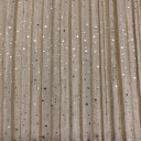 Unique and elegant in its design Pleated Knit with shiny silver foil. The incredibly soft knit features an array of thin folds creating a preppy laid-back vibe. We see easy flowing dresses, skirts, pants and side-slit tunics for an everyday chic look.