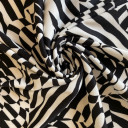 This Patterned Ponte de Roma, ultra-smooth, soft hand with supple drape is a chic, comfortable tri-season fabric. Thin and of a medium weight, use it to create peplum tops, fit-and-flare dresses, pencil skirts, and more. Completely opaque, lining this material is not of necessity for most applications. Note that this material has a very similar hand and body to that of a scuba knit.