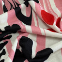 Printed Jersey scuba with crepe texture. Extremely elastic, opaque and strong. Smooth and flexibile to the touch, it is used for sewing different kind of models from sweatshirts to fit-and-flare dresses and circle skirts. Scuba is also suitable for leggings, dance clothes and evening dresses, skirts, even for blazers and Chanel costumes.