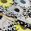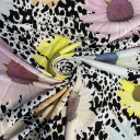 Printed Jersey scuba with crepe texture. Extremely elastic, opaque and strong. Smooth and flexibile to the touch, it is used for sewing different kind of models from sweatshirts to fit-and-flare dresses and circle skirts. Scuba is also suitable for leggings, dance clothes and evening dresses, skirts, even for blazers and Chanel costumes.
