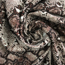 Printed scuba or loran is a type of jersey characterized by a rubbery structure. This textil is extremely elastic, opaque and strong. Smooth and flexibile to the touch, it is used for sewing different kind o models from sweatshirts to fit-and-flare dresses and circle skirts. Scuba is also suitable for leggings, dance clothes and evening dresses, skirts, even for blazers and suits. It is made in various types of designs from animal to flowers, etc.
