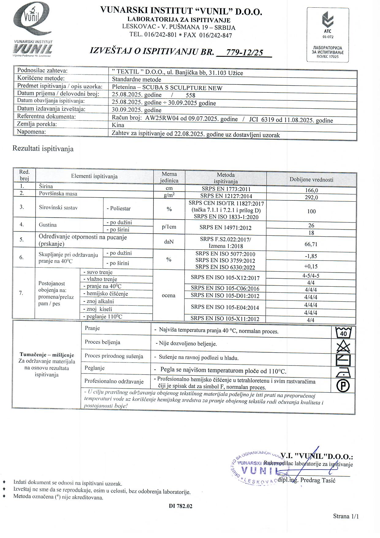 Sunđerasta skuba je mekan i elastičan materijal koji odlično drži formu. Koristi se za šivenje elegantnih haljina sa puf rukavima, suknji, top majica, ali i u kežual programu za jakne, dukseve, mantile..