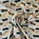 Textile collection with prints on cotton single jersey with Lycra, versatile for all seasons and styles. Depending on the pattern, it allows for comfortable and eye-catching designs that are easy to maintain and wrinkle-resistant. Perfect for summer essentials like dresses, t-shirts, tunics, pajamas, and winter turtlenecks. Our design studio can create an exclusive design for you using this knit fabric.