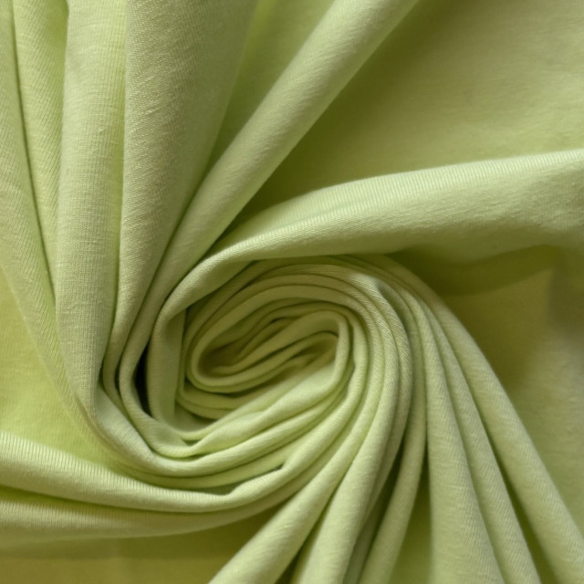Lightweight cotton single jersey with Lycra for ultimate comfort and ease. A versatile knit fabric perfect for t-shirts, underwear, tunics, pajamas, dresses, and more. Easy to care for and resistant to wrinkles. An excellent canvas for creative prints. Over 50 colors available daily.