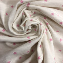 Reactive Printed Cotton Slub Jersey. This slub cotton yarns contains slight lumps and imperfections, often left in the fabric on purpose or created deliberately by knotting or twisting the fabric as it is woven or spun. Absorbent and breathable. Ideal for clothing that gets daily use, like t-shirts, summer dresses and skirts.