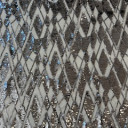 Attractive sequins on tulle. Small sequins form bold diamond patterns across the tulle fabric. Suitable for special occasions, this fabric is used for sewing luxurious long dresses, skirts, and blouses. For optimal comfort and opacity, it is best paired with a lining.