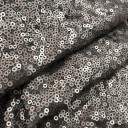 Shine like a star with this All-Over Sequins fabric! Sparkling sequins spread in a random pattern over a mesh, almost completely obscuring it. A flexible drape is perfect for glittering gowns, skirts, and jackets, as well as flashy dance or skating costumes! This material is see-through, so a lining is necessary for opacity as well as comfort in wear and added structure.