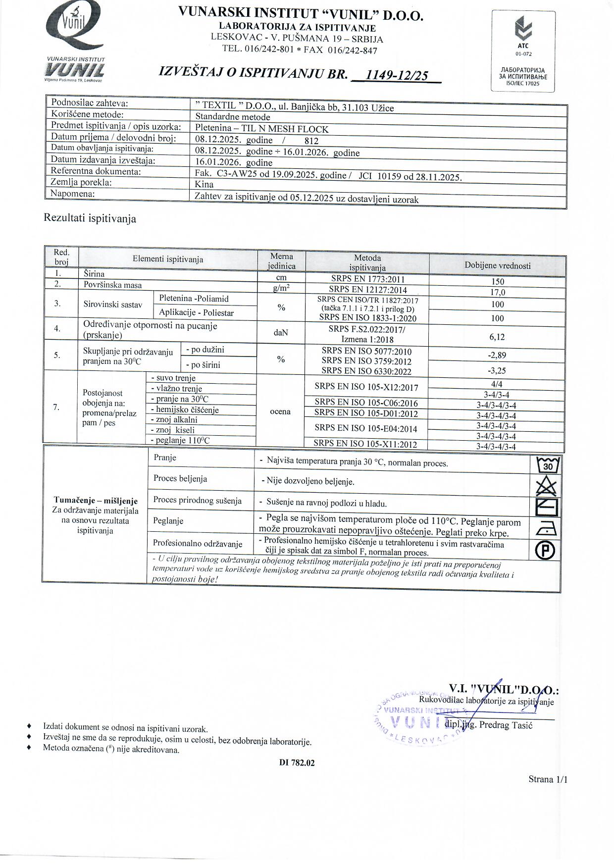 TIL N MESH FLOCK je mrežasta tkanina sa flok tufnama. Zahvaljujući kombinaciji prozirne osnove i baršunastih, uzdignutih tačkica, ova tkanina deluje atraktivno na odevnim komadima. Idealan je izbor za modne detalje, efektne bluze, haljine, slojevite modele i dečiju konfekciju.