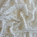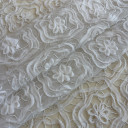 Lightweight tulle with embroidered floral motifs. It is airy and pleasant to the touch. Suitable for formal wear and fashion accessories. Used for dresses, blouses, skirts, and garment details