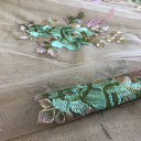 Green and Purple Floral Embroidered Tulle, so elegant and romantic. Drape it over A-line gowns and full skirts for couture-inspired looks that are red carpet ready. Thin, lightweight and incredibly soft, it's impeccable quality is shown with just one touc