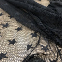This is tulle made from polyester and elasatin with embroidery and lace border. Soft, sheer, and lightweight, good for petticoats or dancewear, overlays on evening wear and so much more!