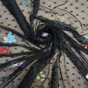 Jedinstven i unikatan til sa cvetnim vezom u boji. Živopisne i nadahnujuće boje na crnoj mrežici učiniće bilo koji odevni predmet atraktivnim, a mi vam predlažemo sledeće: haljne do poda, punije haljine i suknje, romantične bluze ili ga možete koristiti za modne detalje. Iako je neophodno postavljanje, eksperimentišite sa prozirnošću, tako što ćete postaviti samo delove odeće, ili ćete jednostavno postaviti čitav odevni predmet.